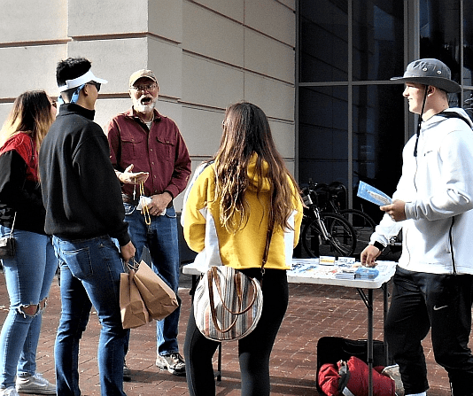 A Catholic teen and his mother returned after initially passing by, grateful to receive a Rosary and Spanish booklet. Another man accepted one and asked for a blessing, comforted to know the Rosaries had already been blessed.