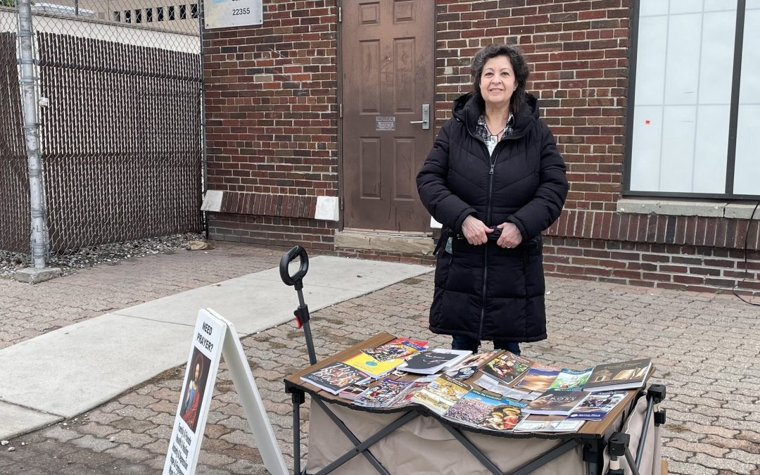 A little later on, we met Madell, an older gentleman who walked with a cane. We asked if we could pray for him, and he said yes, as he fought back tears. He asked for health, blessings, and he took a rosary and pamphlet. He walked away and was grateful and put his rosary over his head as he waited for his bus. Silvia prayed with a bus driver who was getting ready to board his bus. She prayed that God would protect him on his route from accidents and any other trouble, as he was doing an important job getting people where they needed to go.